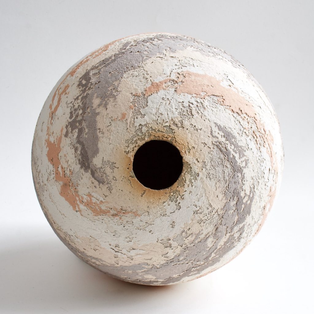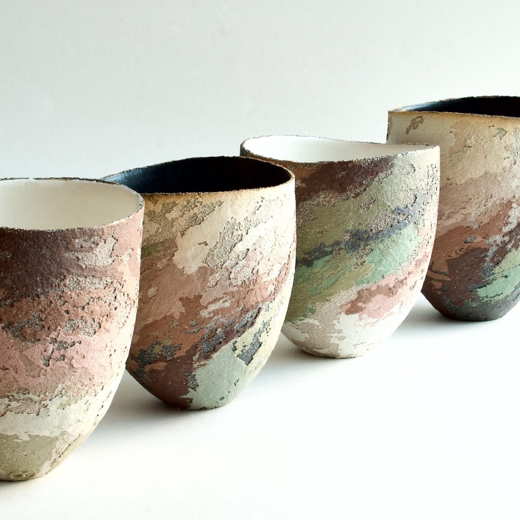 I have shown with many other artists, but I have never had a part in the decision. It has always been the gallerist’s choice. They are usually chosen for the colour match, style, or subject inspiration. I remember being thrilled, when, in 1989, I was given a solo show to accompany Carol Farrow’s paperworks. I’d loved her work for years. It was a superb match of style, inspiration and colour. Later, an exhibition to accompany Janette Kerr’s expressive, atmospheric sea paintings. Coming right up to date – my pots were chosen to be with an artist in Flock Gallery here in the Welsh Marches border, Daniel Crawford’s superb pared-back, minimal colour paintings accentuating the stark, rugged, atmospheric landscape of the area. My next solo exhibition is of my ceramics to be shown with Newlyn Group of paintings inspired by the chalk landscape in White Chalk Gallery (named because of its position) in Wiltshire, UK.