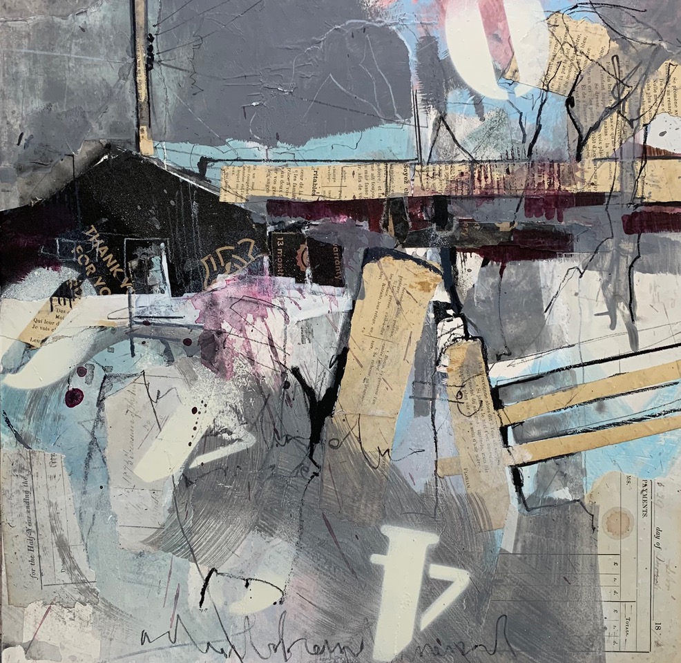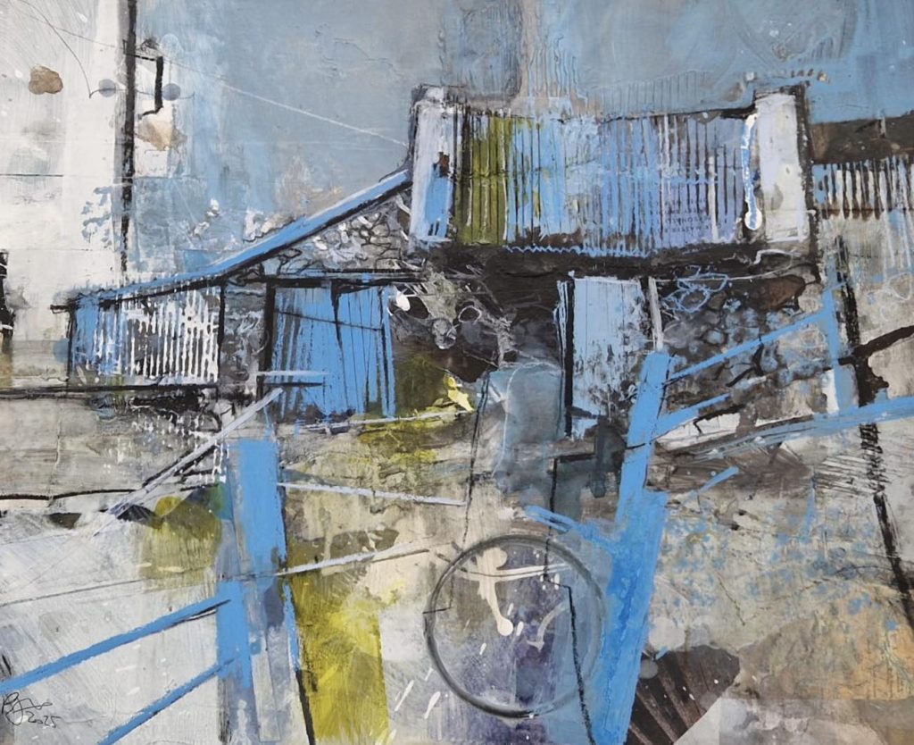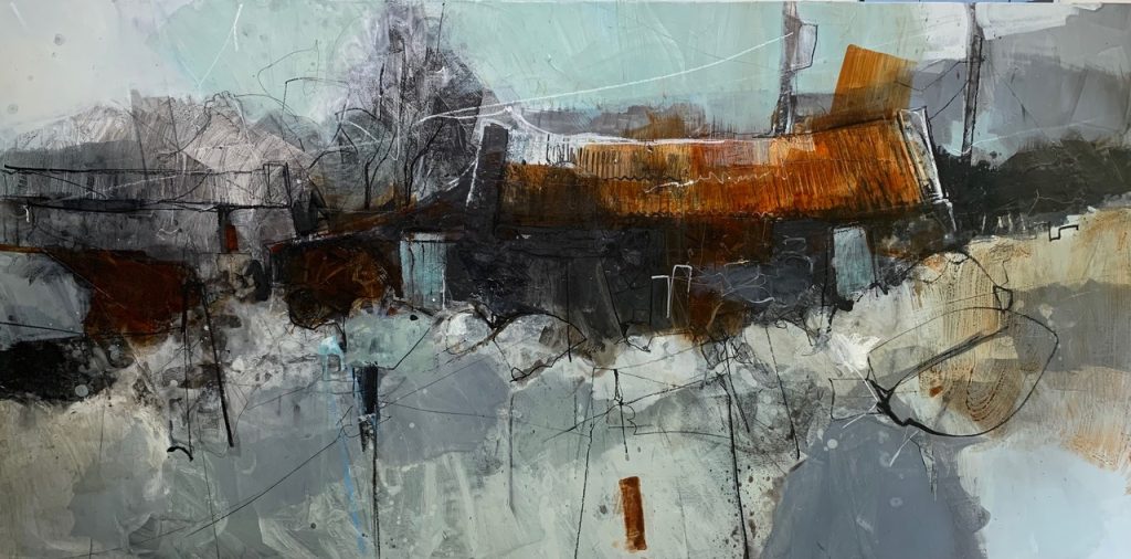 As mentioned I’m not sure there is a classic but certainly there are elements that I love and re-use time and again. Such as corrugated cardboard and old maps for collage. A welsh barn would be typical subject matter, I love the way they snuggle into the landscape and show evidence of hard graft over generations. I want to capture that in the work. There are also colours that could be regarded as favourites; ultramarine blue and burnt Sienna, van gogh brown, green-gold, transparent raw Sienna, transparent red iron-oxide, all from Golden or Liquitex.